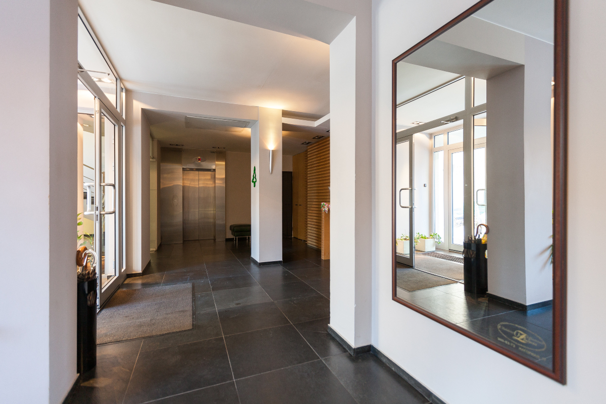 На первом этаже расположено лобби с консьержем. Припарковать автомобиль возможно на наземной стоянке или в подземной части дома. Во внутреннем дворике высажено большое количество взрослых деревьев и кустарников, вдоль которых проложили прогулочные дорожки. Круглосуточная охрана и видеонаблюдение по периметру обеспечат Вам полную безопасность.